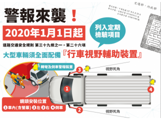 【109年1/1日起大型車須全面配備行車視野輔助】